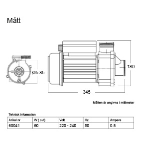 Cirkulationspump från Balboa inkl. 1,3 m anslutningskabel med 4 pins amp-koppling