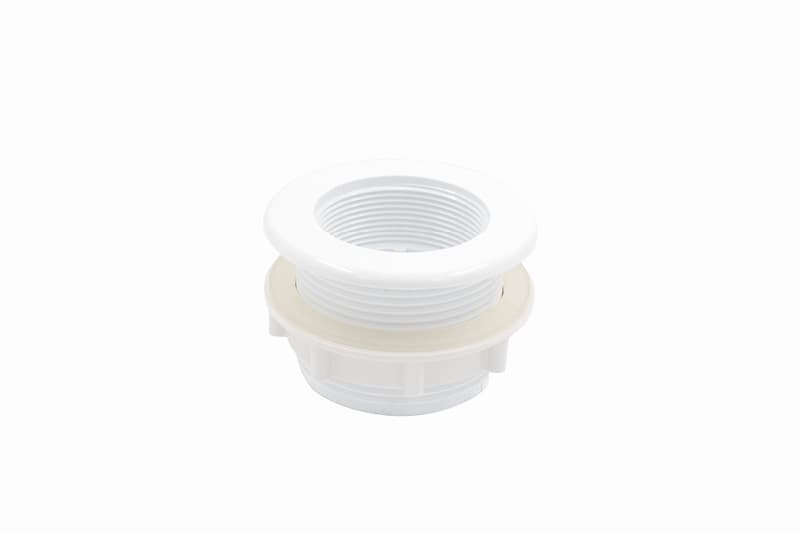 Gängad union i vit PVC för att skruva fast filter. Gängan passar filter med fin gänga ca 56 mm