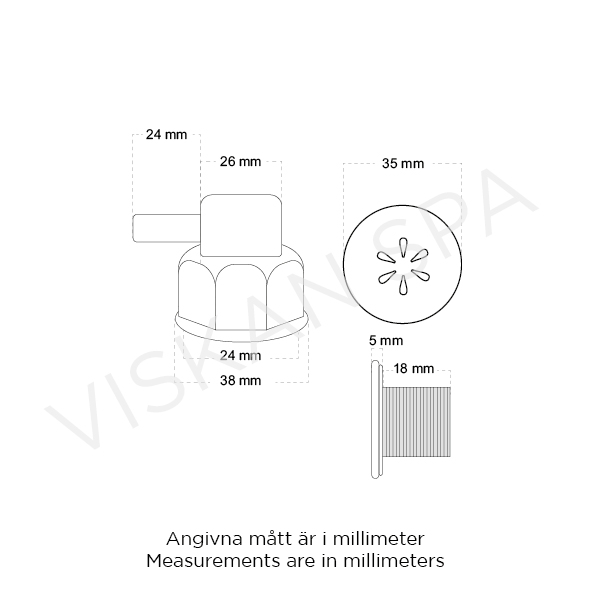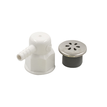 Luftjets vit pvc/rostfritt för blower/kompressor. Överdelen gängas fast i bakstycket med silikon imellan