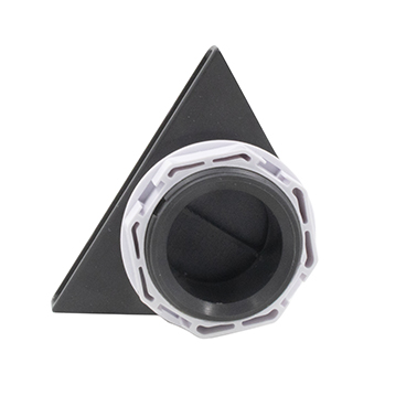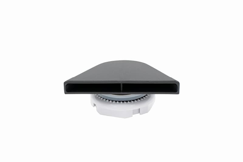 Returjet för cirkulationen, mörkgrå PVC med mutter. Returjetset tätas med silikon på baksida bad innan mutter dras åt.