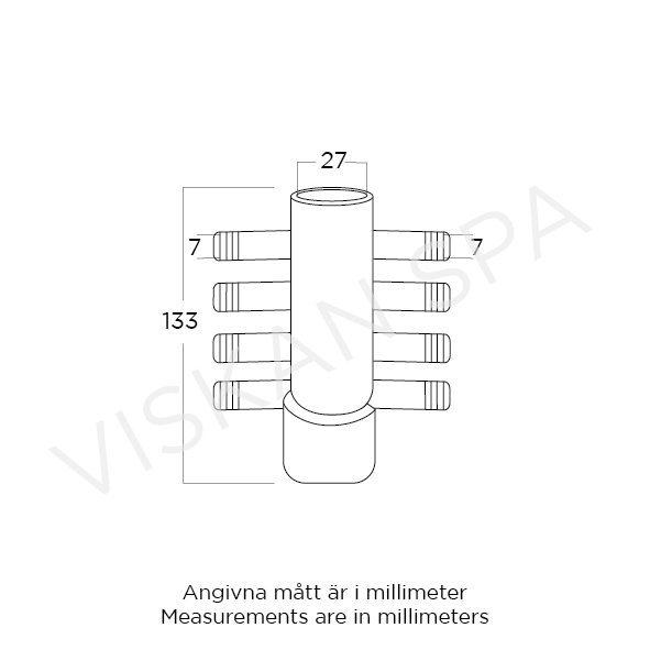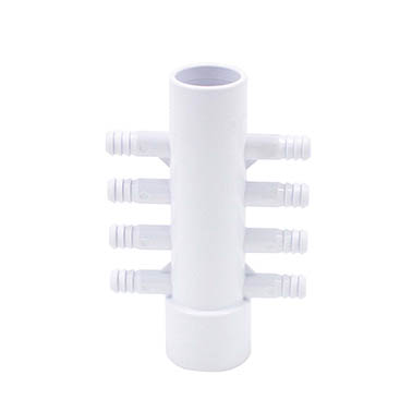 Luftmanifold med 8 anslutningar i vit PVC,  1” yttre diameter x 1” inre diameter, anslutningar 3/8” eller 10 mm slang
