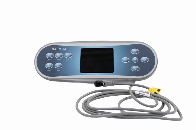 Balboa spakontroll TP700, styr 3 pumpar, belysning samt höjer/sänker temperaturen. Menyknapp för enklare översikt inställningar.
