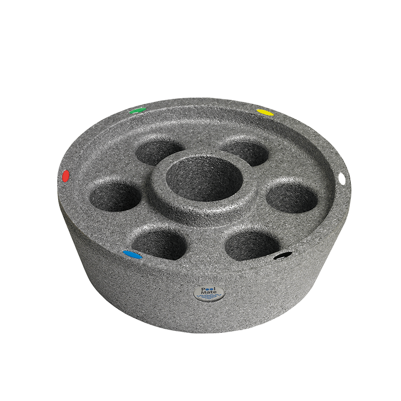 Flytande drinkbricka med färgmarkering där den kylda drycken kan serveras i badet.