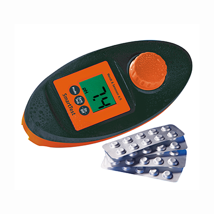En digital photometer som ger dig exakta mätningar av pH-värde, alkalinitet, klor och brom.
